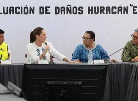 La presidenta de México, Claudia Sheinbaum, supervisó las tareas de ayuda a la población afectada en Oaxaca por el huracán Erick.